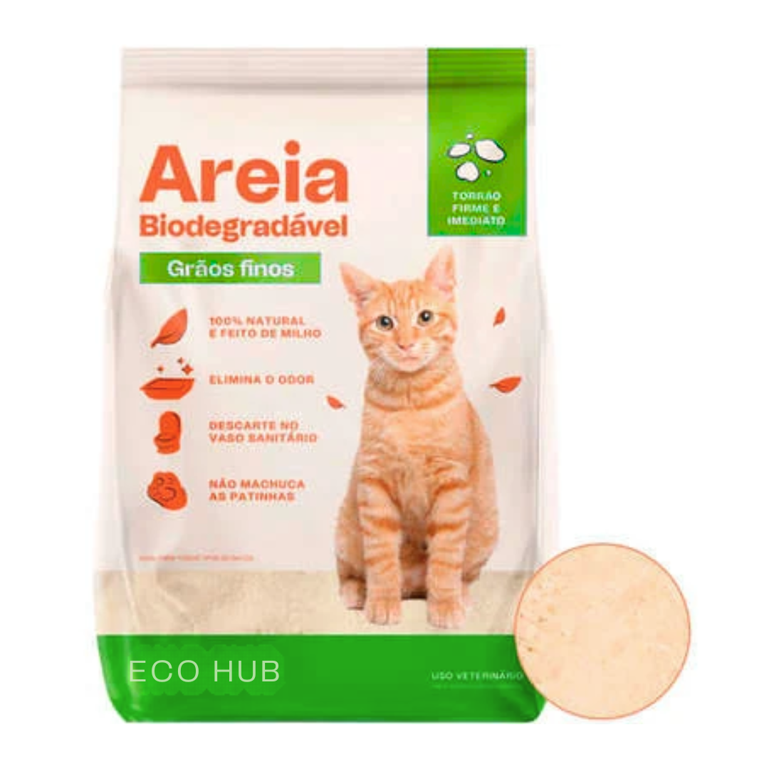 Areia biodegradável para gatos, que une praticidade, conforto e cuidado com o meio ambiente no dia a dia do seu pet.