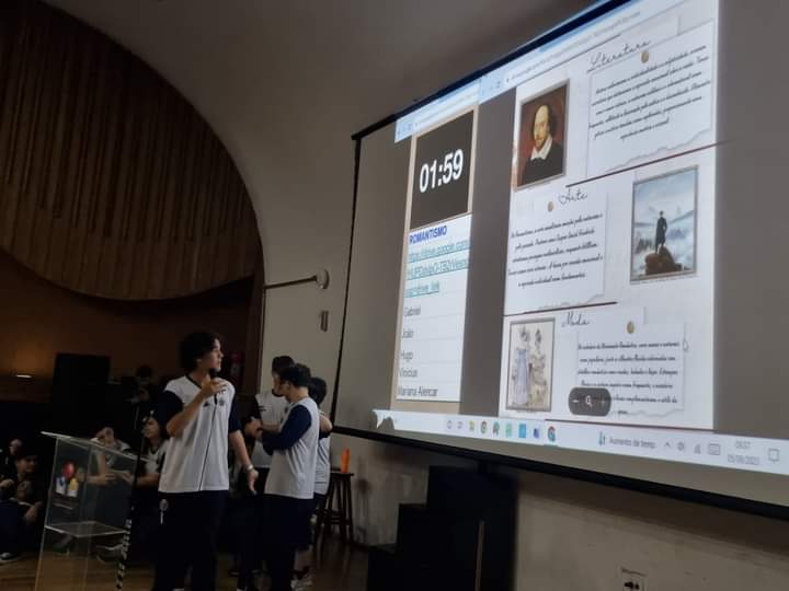 Os alunos do primeiro ano apresentaram mini simpósio estilos de época, falaram sobre estilos de época envolve