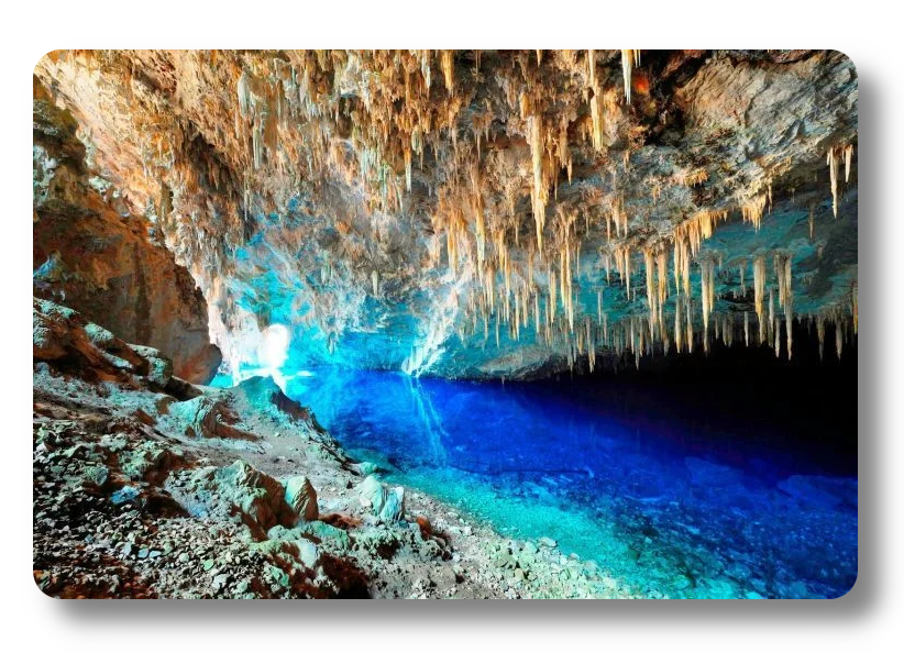 Situada em Bonito, cidade muito procurada por sua natureza exuberante no Mato Grosso do Sul, a gruta cheia de formações de estalactites abriga um lago